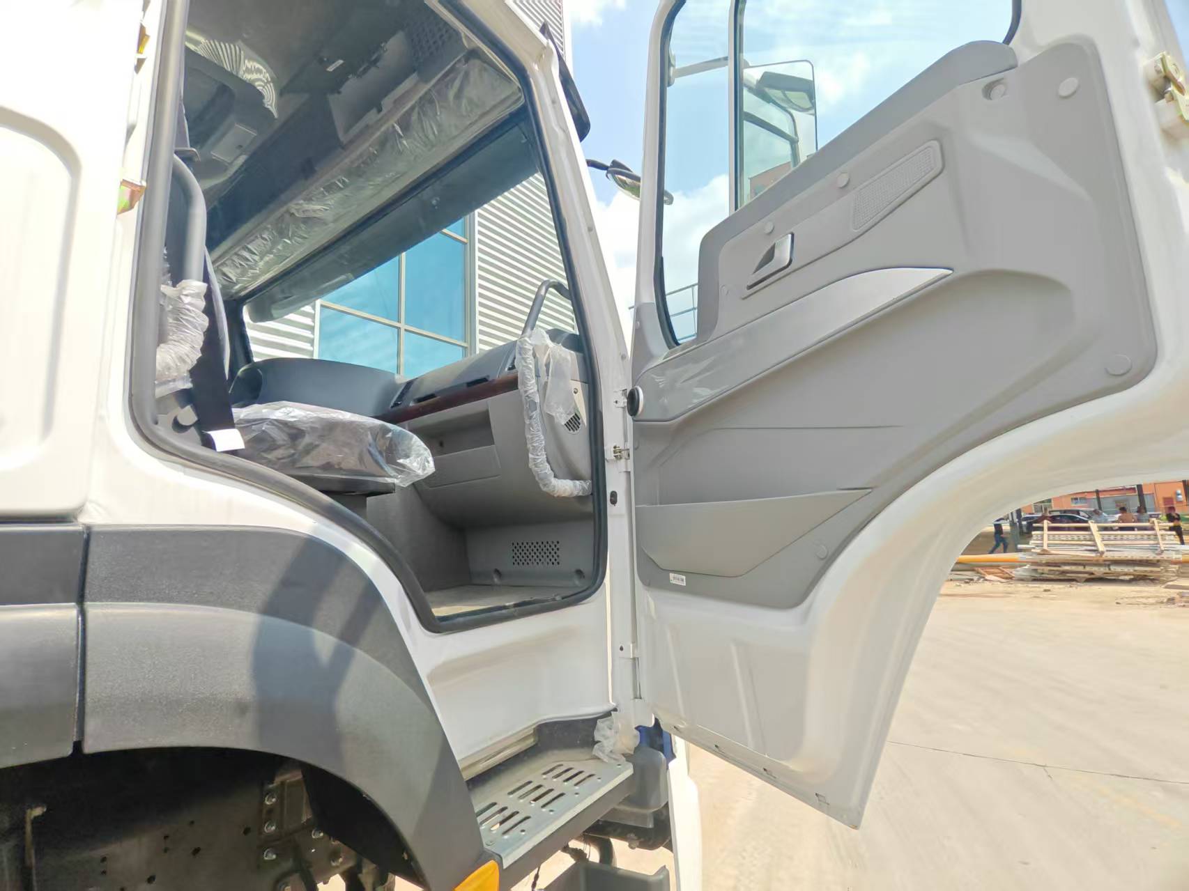The dump truck features two warning lights above the cab, alerting surrounding vehicles and enhancing safety, especially at night. The large primary and secondary rearview mirrors on both sides offer a wide illumination range and minimize blind spots. The lenses are electrically adjustable and heated. The front and right blind spot mirrors are strategically positioned and offer optimal illumination angles. Combined with the standard voice turn signal indicator, they effectively reduce blind spot hazards and enhance driving safety.The pedal is made of aluminum alloy, with a large hollow hole design and anti-slip tread surface to ensure the safety of the driver getting on and off the vehicle.