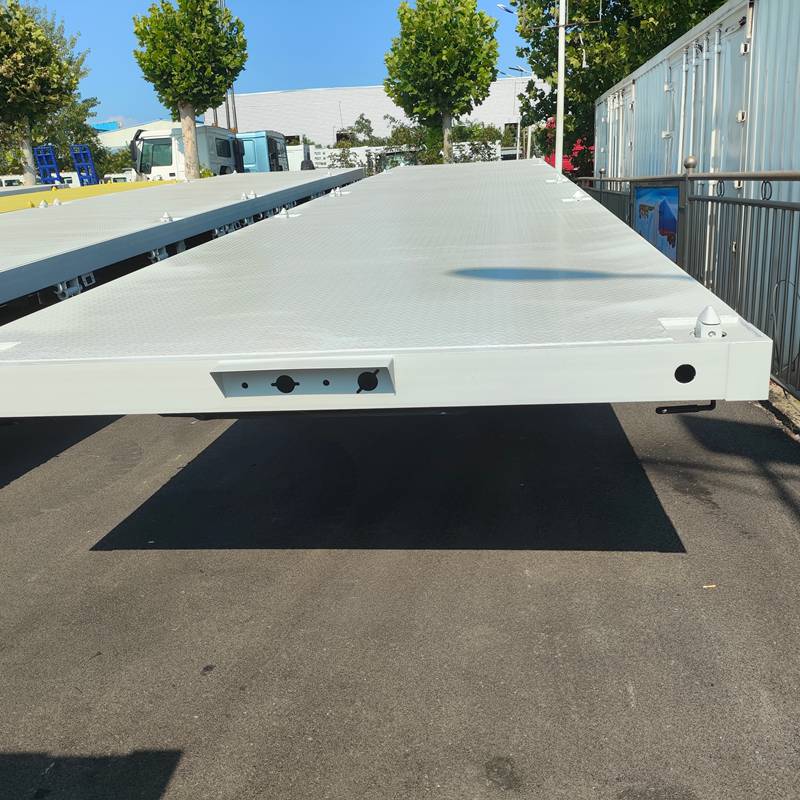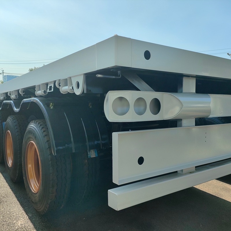 The rear of a 50 tons flatbed trailer features a multi-track bumper design. In the event of an impact, this design distributes the force across multiple locations, preventing damage to a single point due to excessive stress. For example, in a rear-end collision, this design distributes the impact force across different components, minimizing damage to the trailer's main structure. Compared to a single-track bumper, a multi-track bumper offers increased structural complexity and strength, providing better resistance to deformation from external forces. In the event of collisions or scrapes during driving, this design effectively maintains the rear end's shape and minimizes deformation.