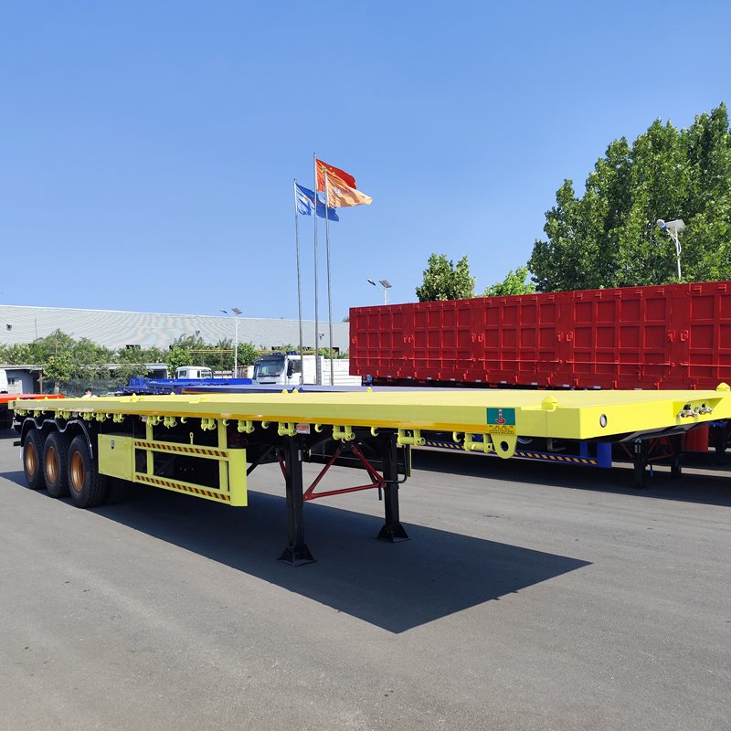 The rear of the 40FT container flatbed trailer features a thickened cylindrical bumper, which enhances safety and impact resistance. In the event of a rear-end collision, the thickened bumper better absorbs the impact, minimizing damage to the semitrailer and the vehicle behind. For example, if a car rear-ends a semitrailer at a moderate speed, the thickened bumper effectively absorbs and disperses the collision energy, reducing the risk of the car driving under the semitrailer and protecting the occupants.