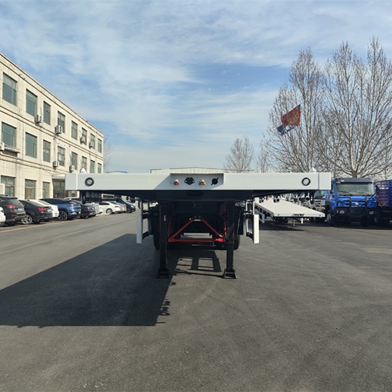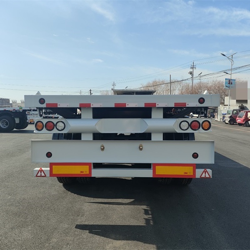 The maximum load capacity of the 3-axle container flatbed semi-trailer is 50 tons. It is highly suitable for transporting 20-foot, 40-foot or special-sized containers. The frame is made of high-strength Q355 steel and coated with anti-corrosion coating, which can resist wear and tear, extend service life, and maintain good condition even under harsh conditions. The three-axis design distributes the weight evenly across each axle, thereby enhancing the overall stability and maneuverability on highways and provincial roads.