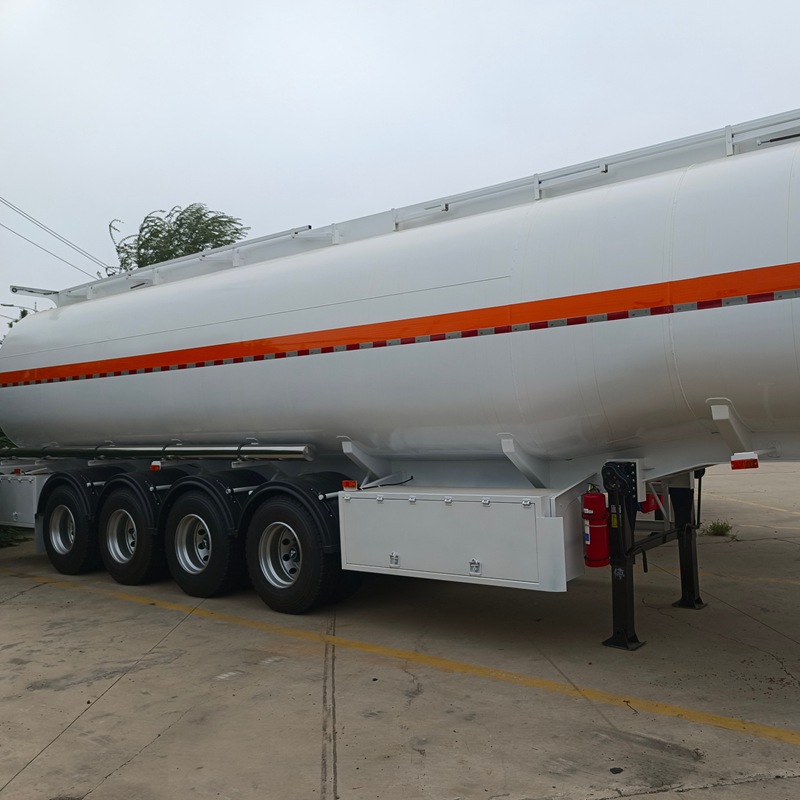 The tank body is equipped with anti-vibration plates at fixed intervals, which reduce the shaking and impact during oil transportation through the drainage holes, and lower the stress on the tank and the risk of driving instability; the vehicle body is equipped with high-visibility reflective strips, which are pasted on the prominent positions of the tank body and the rear, enhancing the vehicle's visibility at night or in low visibility conditions, reminding the following vehicles to maintain a safe distance and reducing collision hazards.