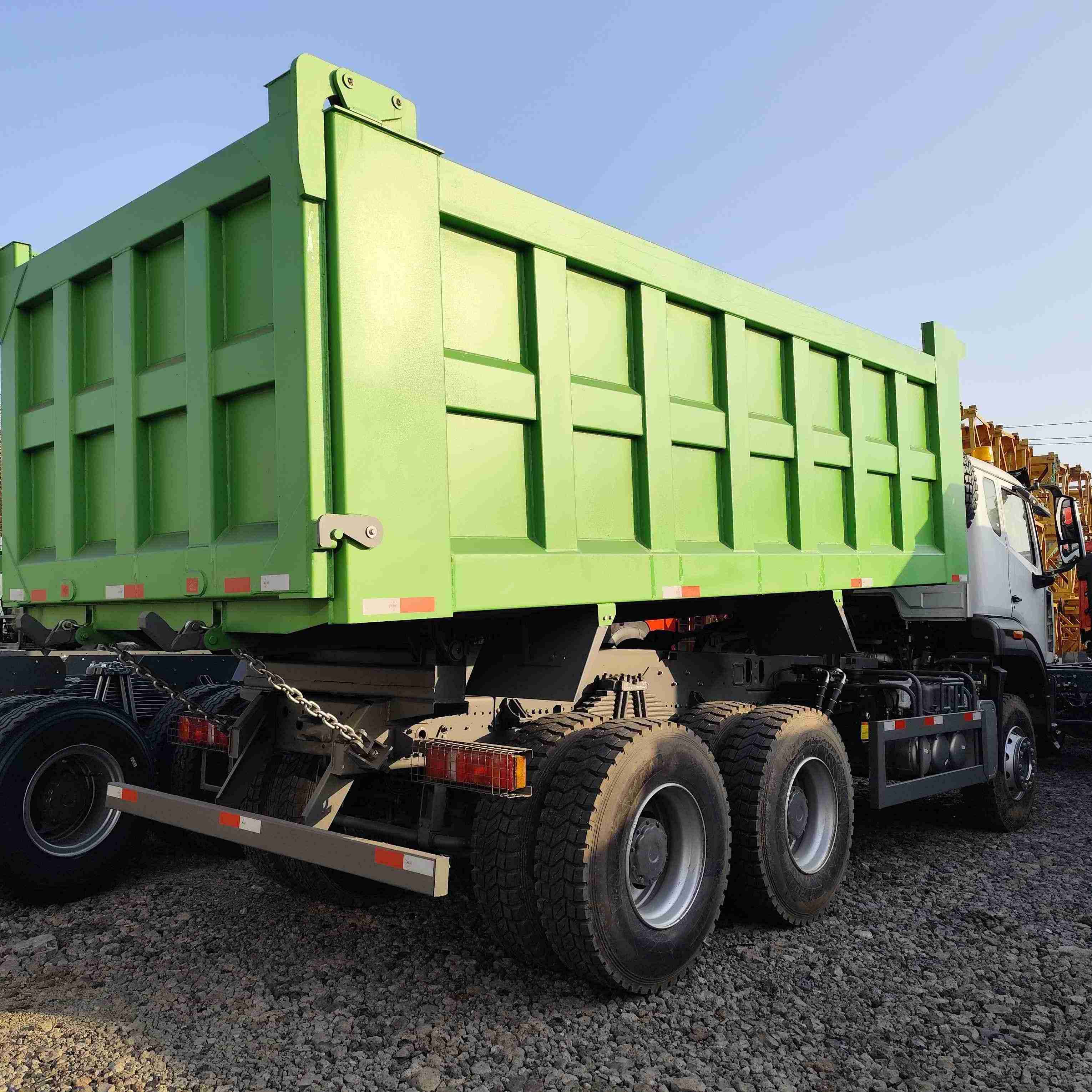 The HOWO NX 6x4 Dumper Truck boasts exceptional manufacturing standards and rigorous quality control.Thanks to close coordination between our factory and logistics team, the HOWO NX 6x4 Dumper Truck was manufactured and inspected efficiently.We placed the customer's dump Truck in the cargo hold of the ship and covered it with a tarpaulin to prevent the vehicle from being corroded by seawater.