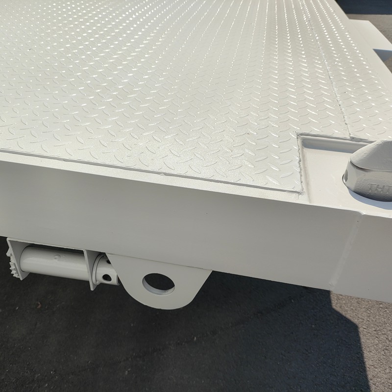 3 axles long flatbed trailer with extremely high rust resistance. Before painting, it is shot blasted to remove impurities from the surface, making the surface smooth and improving the adhesion of paint. Then by electrostatic powder coating technology, the primer and top coat are sprayed and finally dried by electric baking. Before shipment, it will be sprayed with wax as well as covered with waterproof tarp to prevent the erosion of humid air.