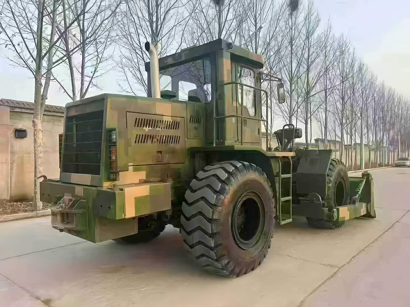 This is a YUTONG HEAVY INDUSTRY TLK220 wheel dozer, with a service history of ten years but only 700+ actual operating hours. Originally serving as a backup unit for its organization, it remained in static storage on standby and was deployed only for critical missions. Equipped with a Cummins 200+ horsepower engine, its 3.4-meter front blade features tilting functionality. The front scarf plate ensures superior stability, while the adjustable undercarriage adapts to varied terrains. The hydraulic system remains smooth to this day. Despite its age, the machine maintains excellent mechanical condition due to minimal usage, making it suitable for engineering scenarios demanding robust power and flexible operation
