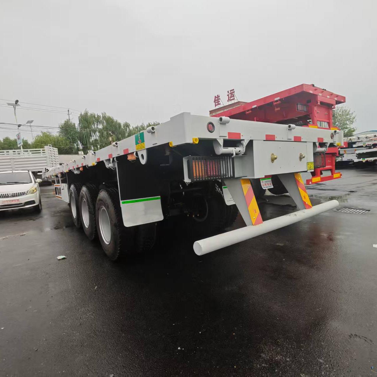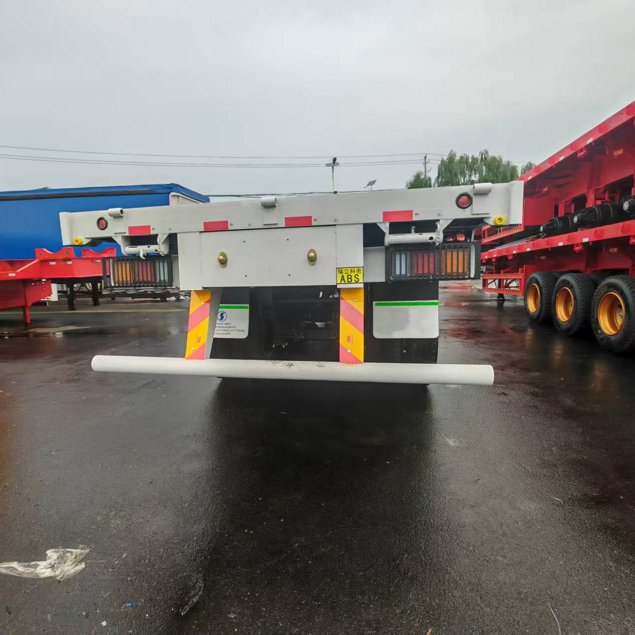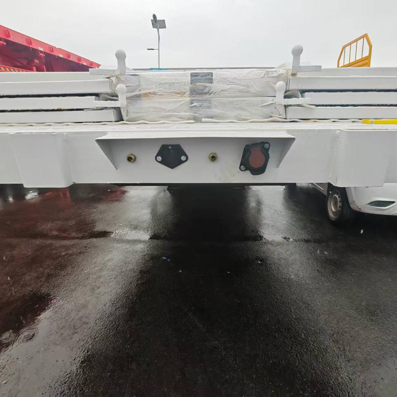 The rear of a 50 tons flatbed trailer features a multi-track bumper design. In the event of an impact, this design distributes the force across multiple locations, preventing damage to a single point due to excessive stress. For example, in a rear-end collision, this design distributes the impact force across different components, minimizing damage to the trailer's main structure. Compared to a single-track bumper, a multi-track bumper offers increased structural complexity and strength, providing better resistance to deformation from external forces. In the event of collisions or scrapes during driving, this design effectively maintains the rear end's shape and minimizes deformation.