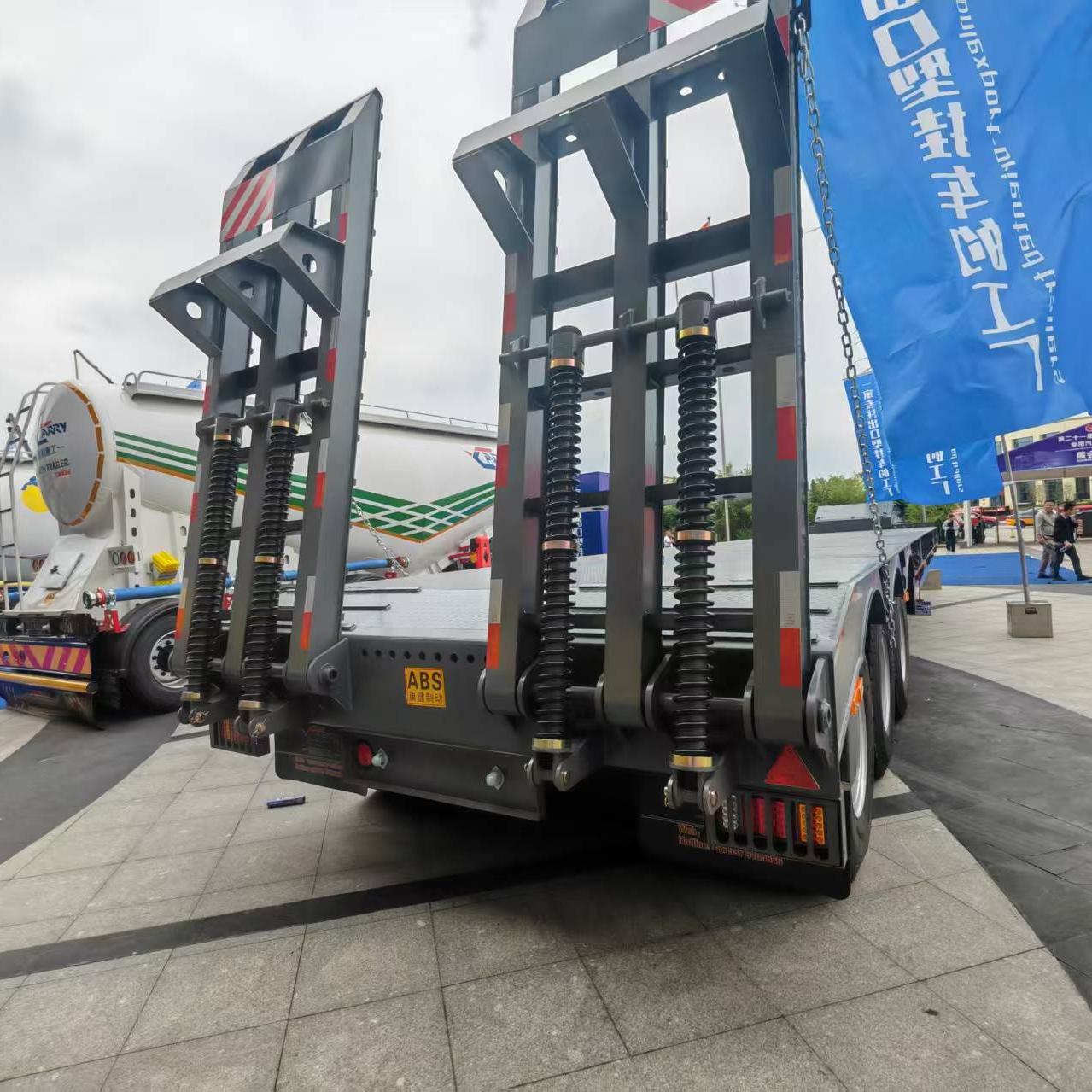 The rear of a 50 tons flatbed trailer features a multi-track bumper design. In the event of an impact, this design distributes the force across multiple locations, preventing damage to a single point due to excessive stress. For example, in a rear-end collision, this design distributes the impact force across different components, minimizing damage to the trailer's main structure. Compared to a single-track bumper, a multi-track bumper offers increased structural complexity and strength, providing better resistance to deformation from external forces. In the event of collisions or scrapes during driving, this design effectively maintains the rear end's shape and minimizes deformation.