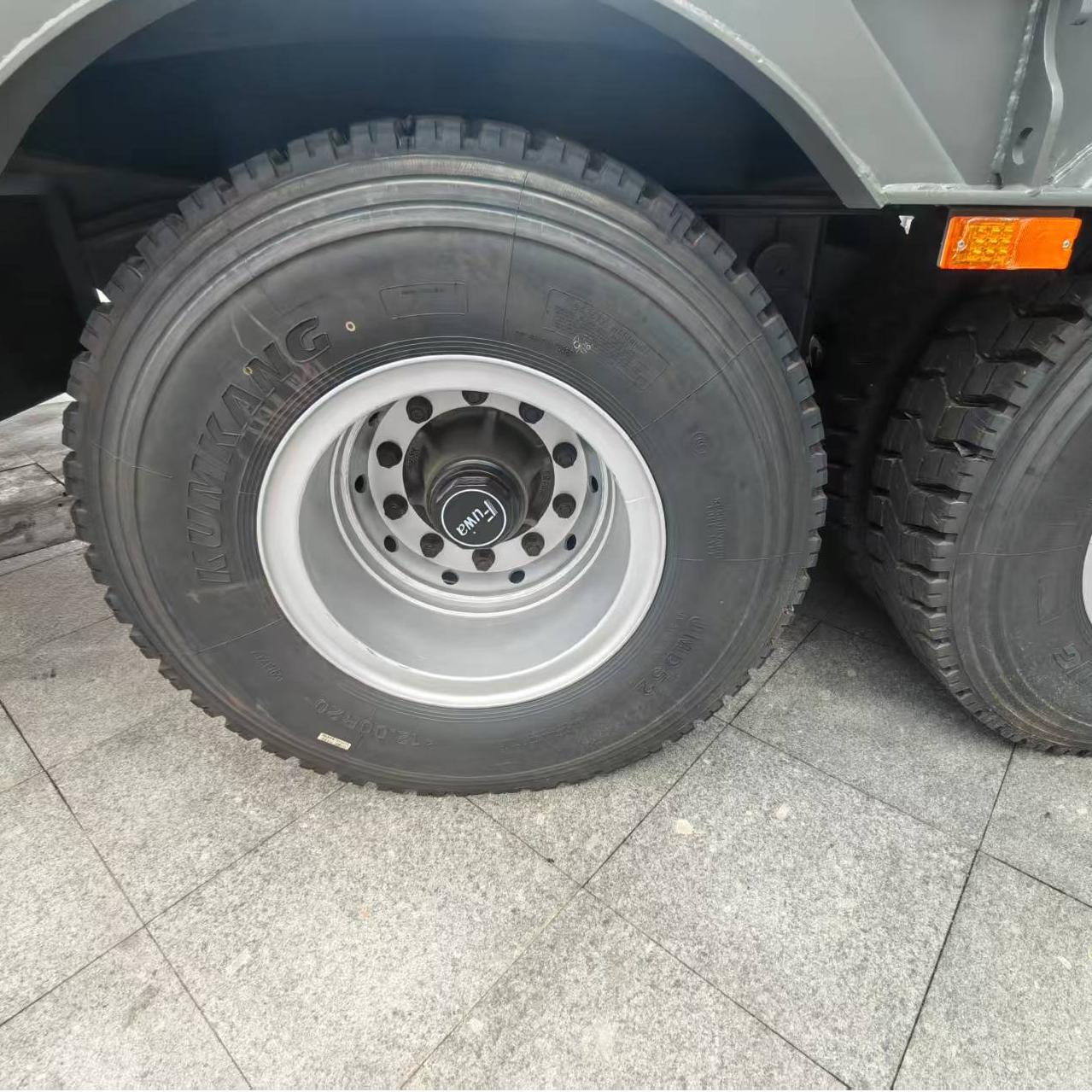 The 3-axles flatbed trailer uses 12R22.5 tires and thicker 16mm gold wheels. The larger wheel size and wider tires increase the vehicle's contact area with the ground, improving vehicle stability during driving, especially when driving at high speeds or cornering.They can effectively reduce vehicle roll and sway, lower the risk of vehicle loss of control, and improve driving safety.The 16mm thick steel ring has a stronger load-bearing capacity and is suitable for users to use when pulling heavy loads.