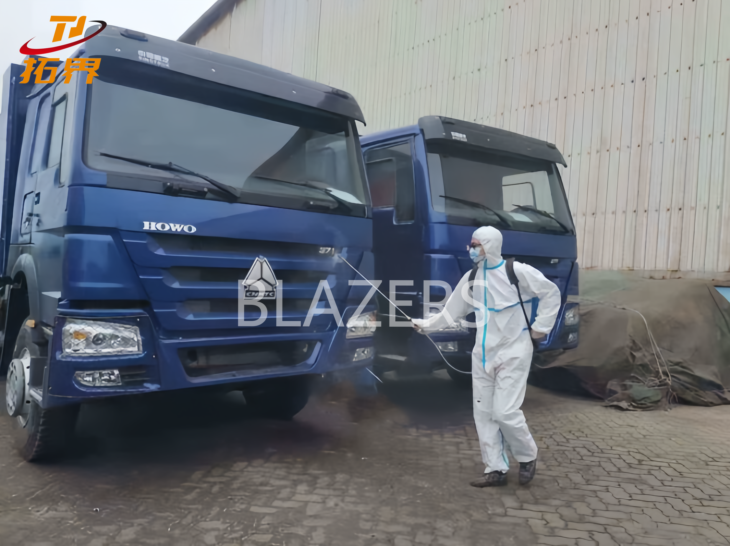 Due to the transport is on the ocean, so the rusty issue need pay more attention. Our used SINOTRUK HOWO dump truck will spray wax before loading into vessel, see picture also.