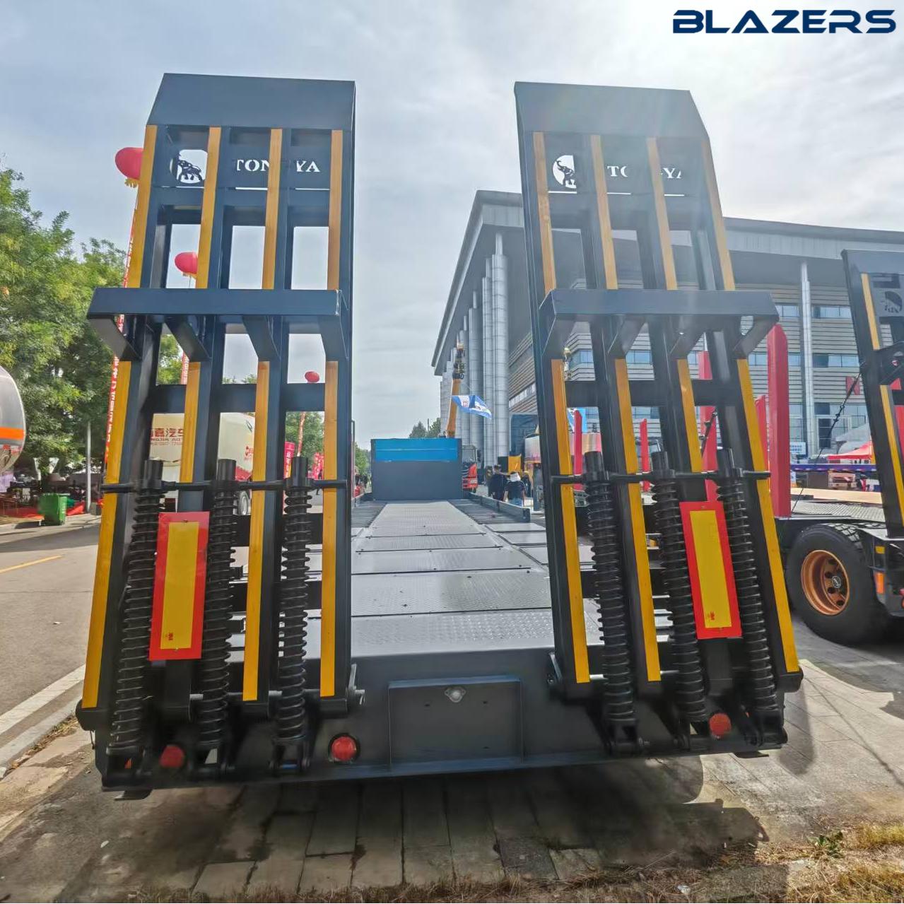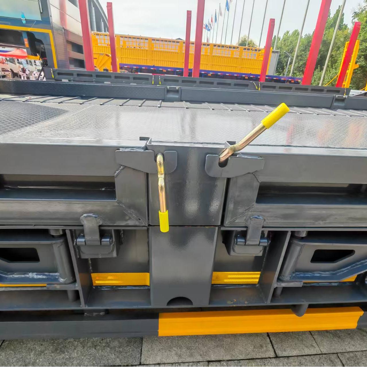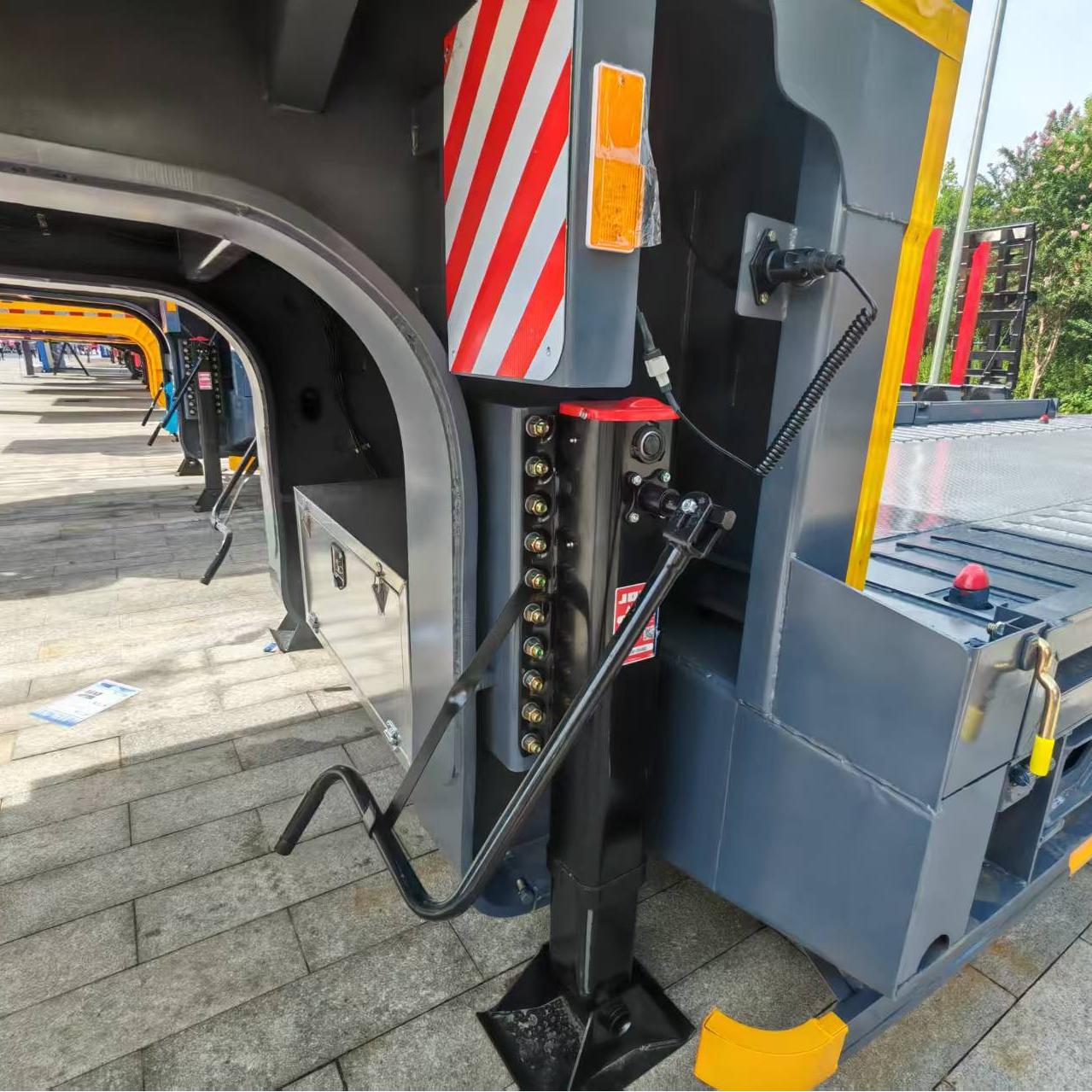 The rear of a 50 tons flatbed trailer features a multi-track bumper design. In the event of an impact, this design distributes the force across multiple locations, preventing damage to a single point due to excessive stress. For example, in a rear-end collision, this design distributes the impact force across different components, minimizing damage to the trailer's main structure. Compared to a single-track bumper, a multi-track bumper offers increased structural complexity and strength, providing better resistance to deformation from external forces. In the event of collisions or scrapes during driving, this design effectively maintains the rear end's shape and minimizes deformation.