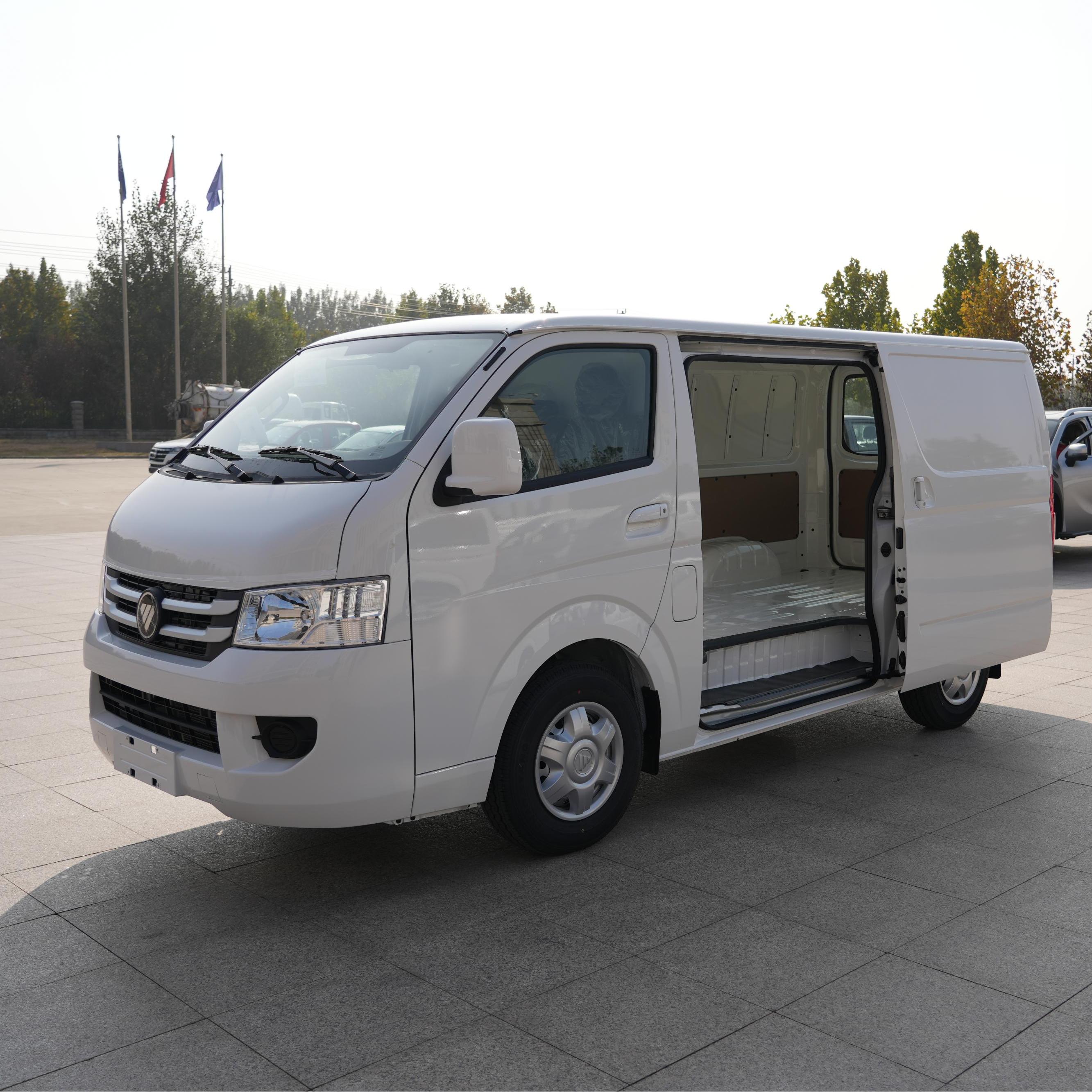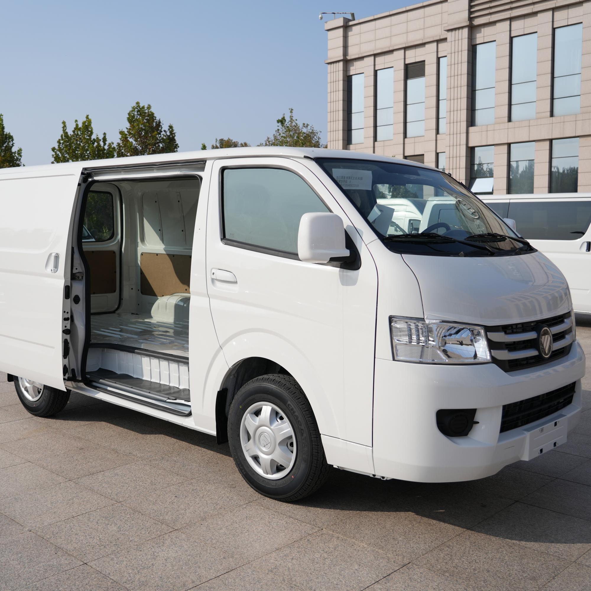 The Foton G7 cargo van is equipped with a comprehensive braking system featuring front disc and rear drum brakes, supplemented by a rear wheel hand brake for parking. It rides on a set of five 195R15C tires (available in either steel wheels with covers or aluminum alloy wheels), accompanied by a full-size spare tire on a steel wheel. The vehicle is powered by a 65-liter fuel tank. Its suspension system consists of a front double-wishbone torsion bar independent suspension and a rear leaf spring non-independent suspension, with a 3+1 leaf spring configuration at the back.
