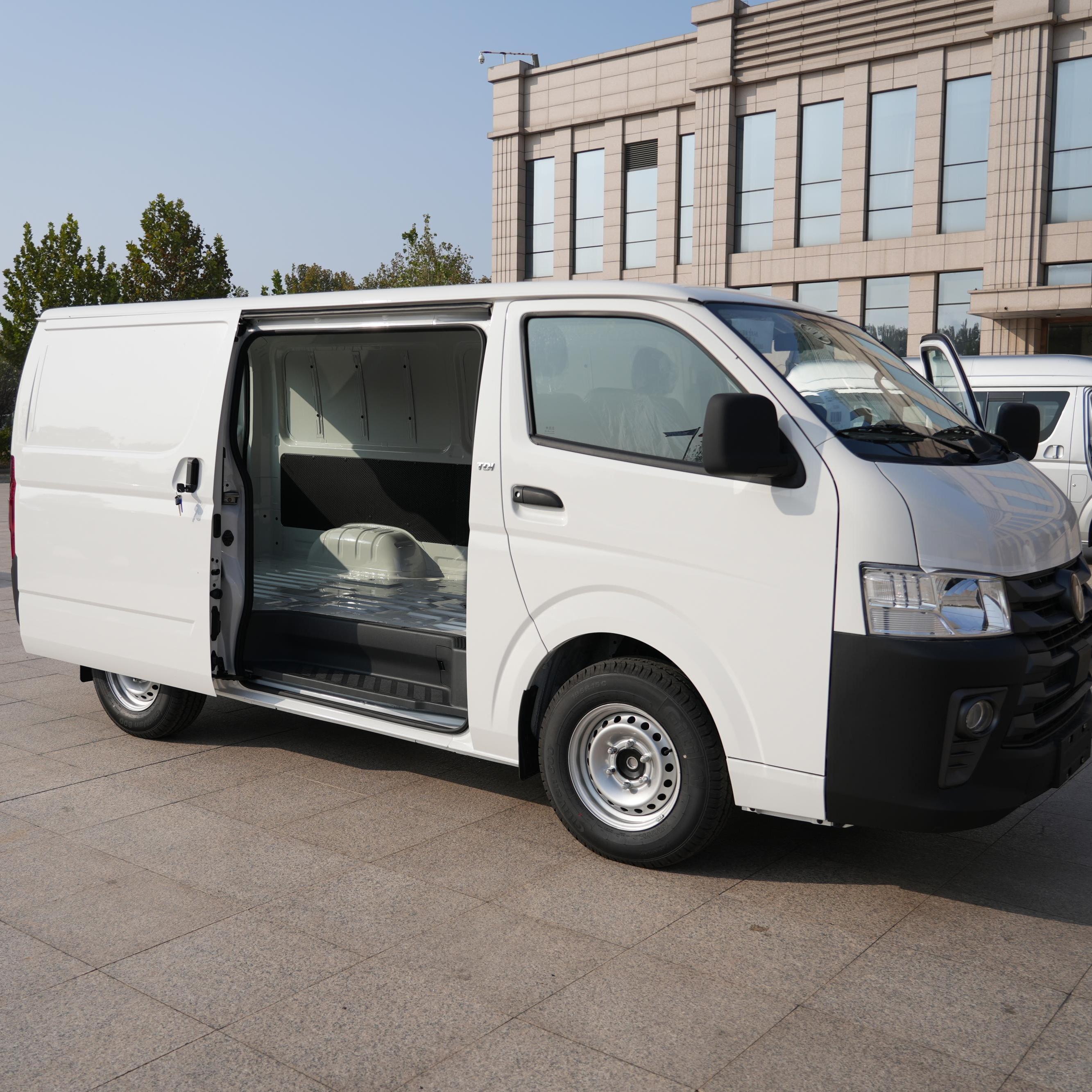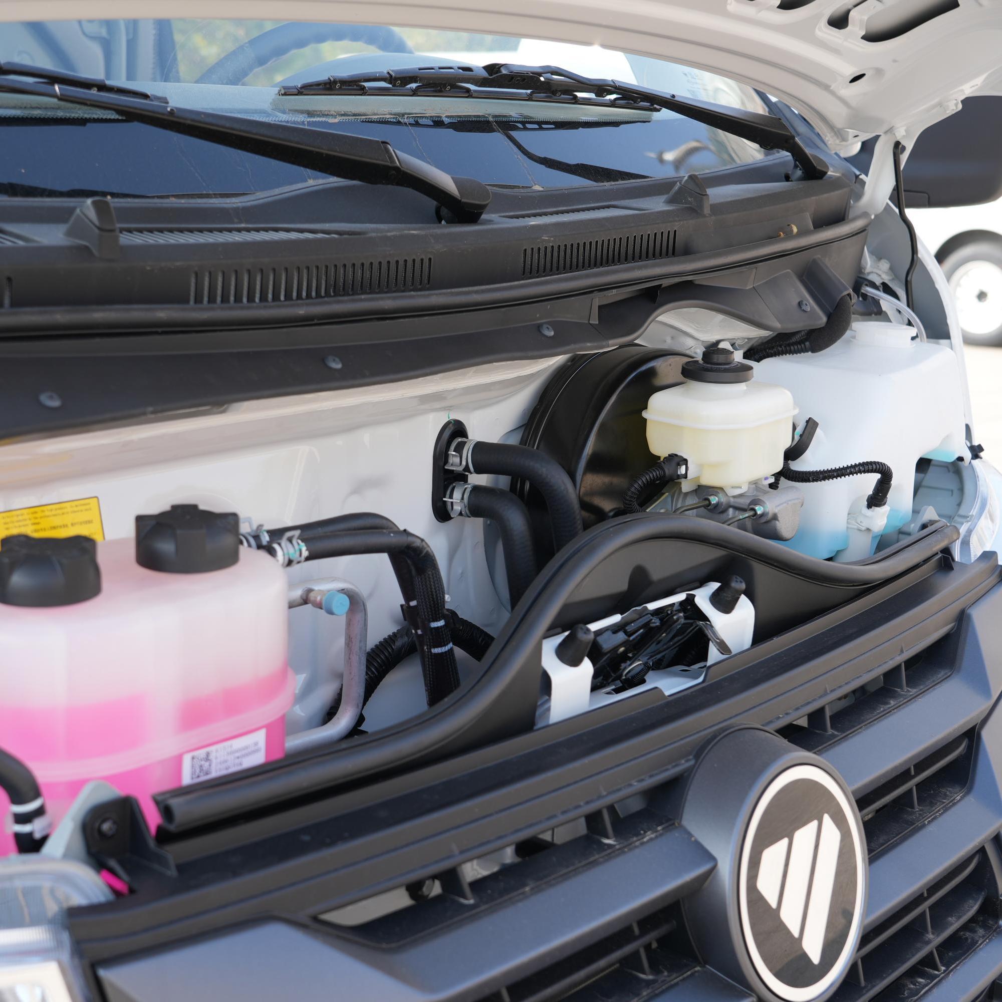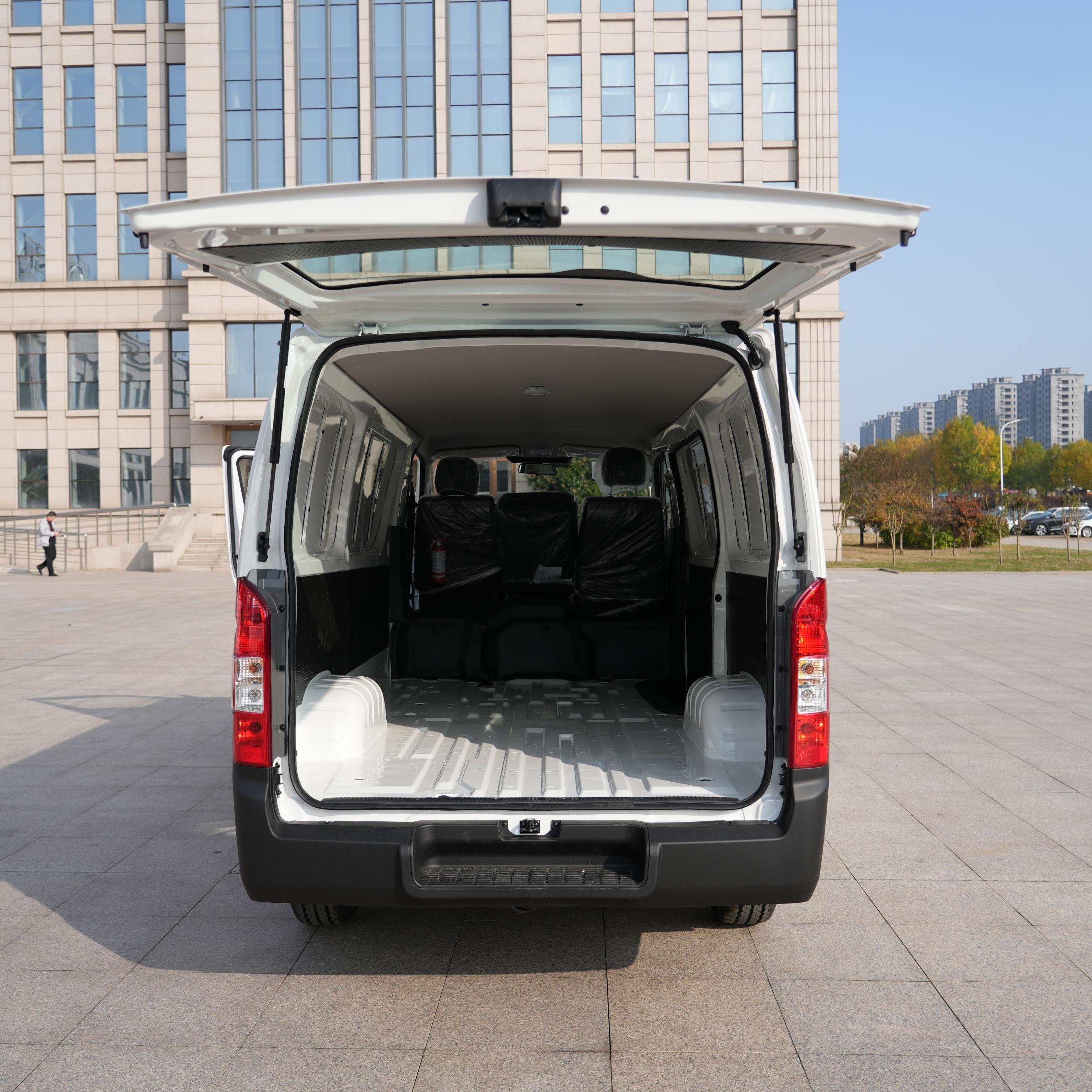 The Foton G7 cargo van is equipped with a comprehensive braking system featuring front disc and rear drum brakes, supplemented by a rear wheel hand brake for parking. It rides on a set of five 195R15C tires (available in either steel wheels with covers or aluminum alloy wheels), accompanied by a full-size spare tire on a steel wheel. The vehicle is powered by a 65-liter fuel tank. Its suspension system consists of a front double-wishbone torsion bar independent suspension and a rear leaf spring non-independent suspension, with a 3+1 leaf spring configuration at the back.